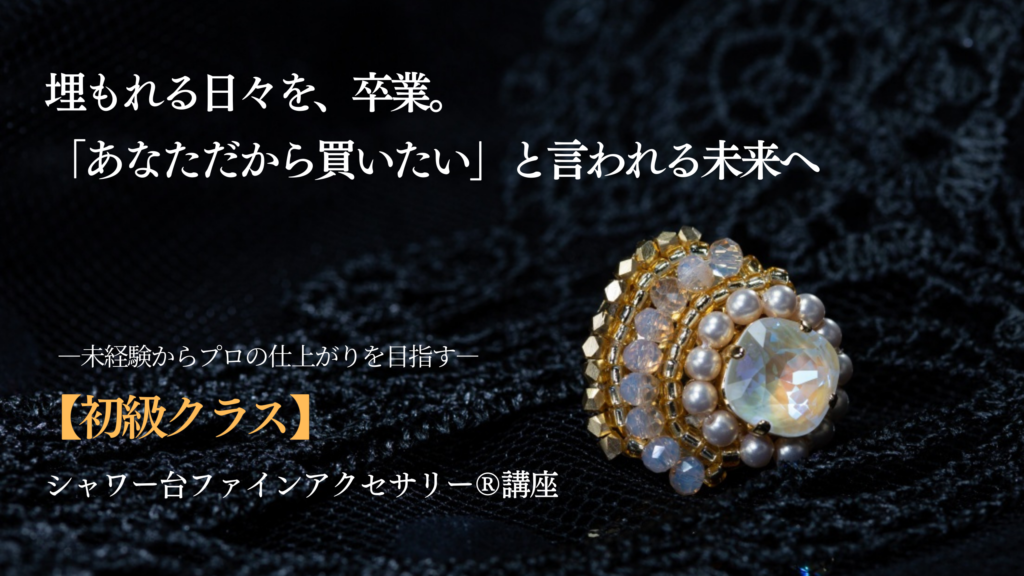 安価に消費されるアクセサリーを卒業し、芸術性と品格を備えたコスチュームジュエリー作家への道が開けます。